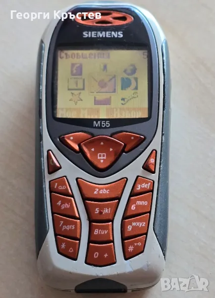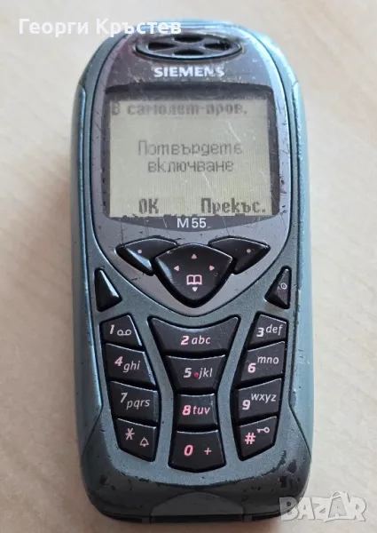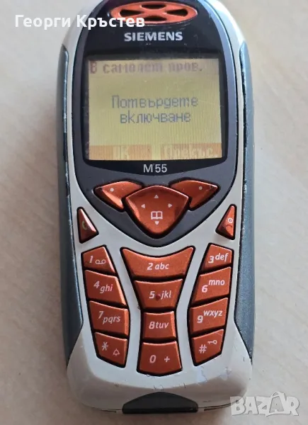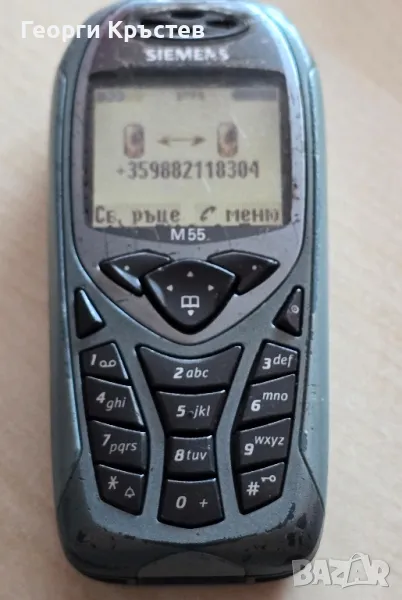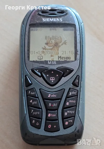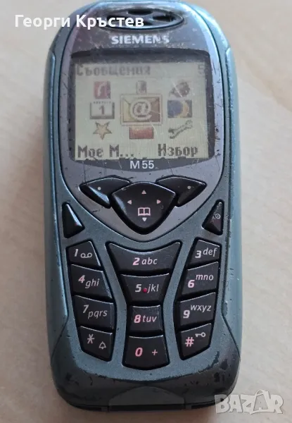 М55 - сив - 30 лв. - телефона се включва и работи, тестван с А1, нямам друга за проба, зарежда си батерията, добър външен вид, клавиатура, слушалка, микрофон, всичко е ОК, има БГ меню, без батерия и зарядно - 30 лв.