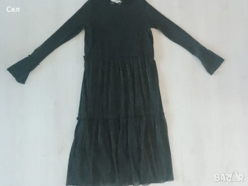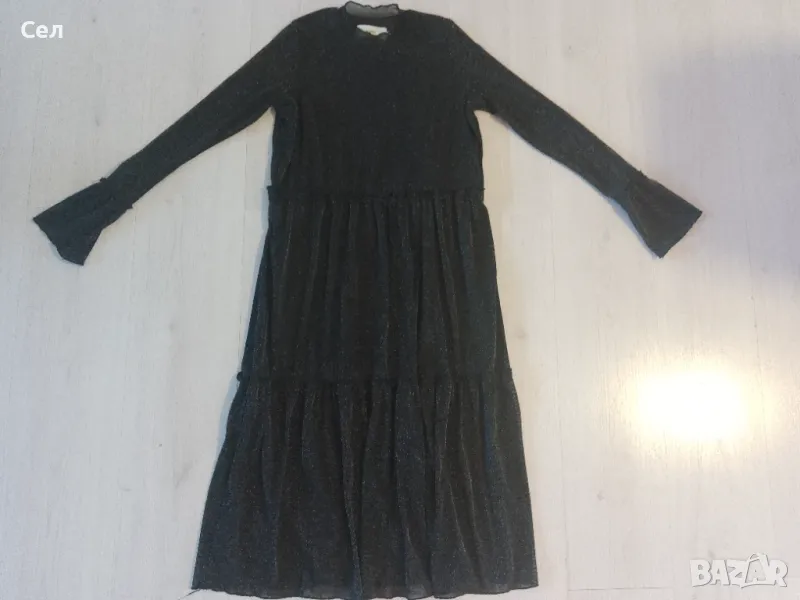 Нова черна миди рокля с лъскава нишка и с дълъг ръкав.