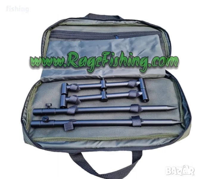 Комплектът се състои от две Колчета 39см-68см и два бъзбара с дължина 25см за две въдици.
