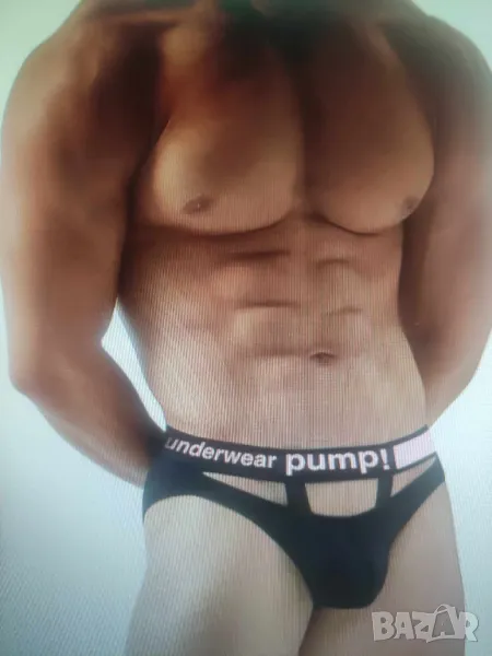 Мъжки еротичен слип на известната марка Pump, размер M. Материя - 95% модал, 5% спандекс. Слипът разполага с допълнителен ластик, който от една страна повдига пакета и създава обем на мъжкото достойнство, а от друга е красив елемент в дизайна на модела.