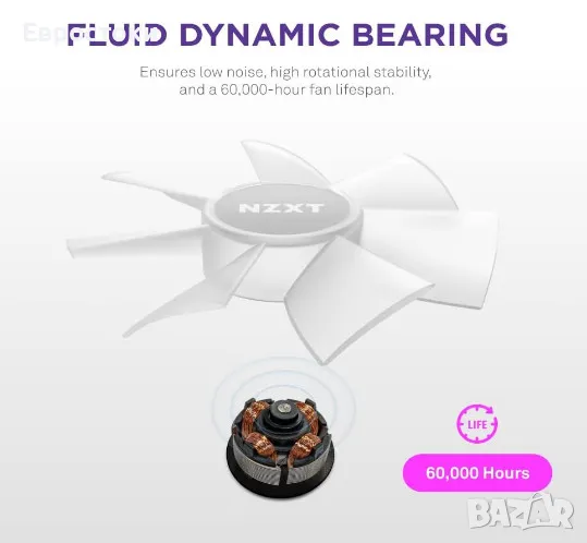 Fluid Dynamic Bearings осигурява висока стабилност на въртене, като същевременно намаляват шума от лагерите и увеличават живота на вентилатора до 60 000 часа.