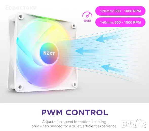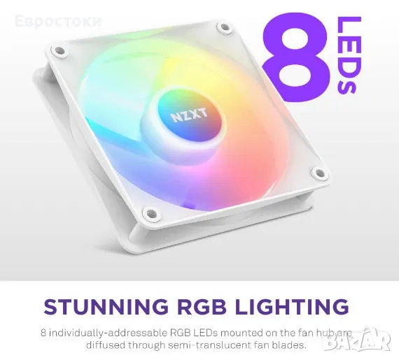 RGB вентилатори NZXT от серията F предлагат брилянтно осветление с осем индивидуално адресируеми RGB светодиода и първокласно охлаждане с високо статично налягане.