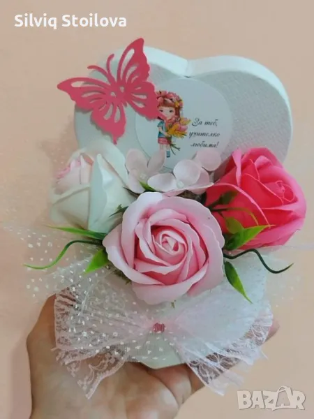 Страхотно бюджетно предложения на супер цена със 3 броя сапунени рози за първия учебен ден📖🖋✅Височина 14 см,ширина 18 см с дантелата ✅Изработват се по поръчка. ✅Изпращам с Еконт в цялата страна