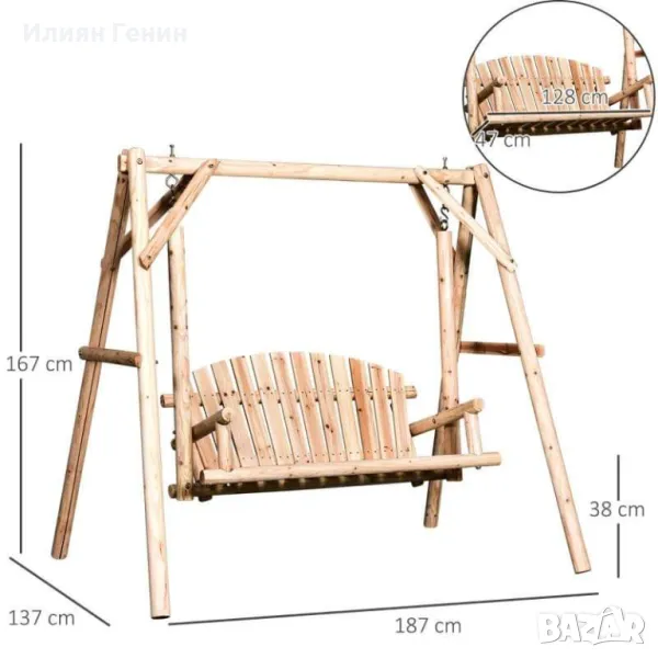 НЕЖНО ЛЮЛЕТЕНЕ: Тази здрава свободностояща люлка от трупи ви осигурява плавно, бавно люлеене. Правите приставки за трупи закрепват седалката към рамката, придавайки на тази люлка здрав и стабилен диапазон на движение. Габаритни размери: 187L x 137W x 170Hcm