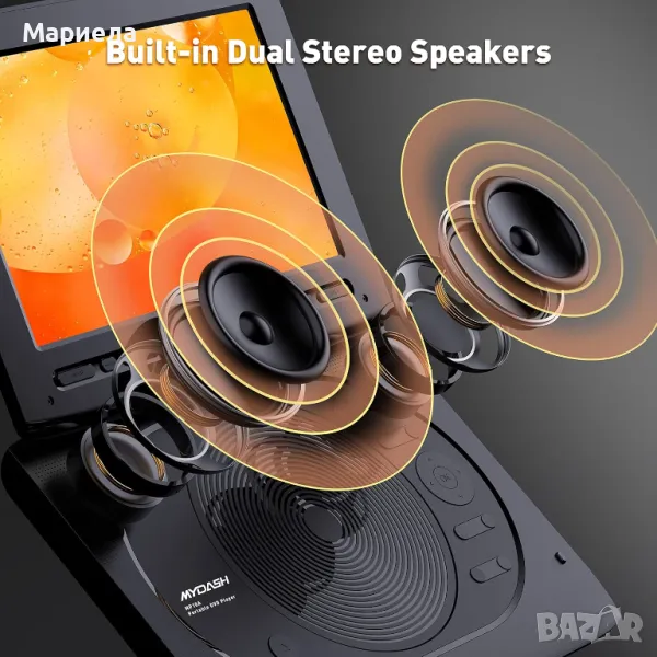 Имате ли план за дълго пътешествие с вашето непослушно мъниче? Този преносим DVD плейър с калъф за монтиране на облегалката за глава реализира вашите желания.Можете да закачите този преносим DVD плейър за деца здраво на гърба на облегалката за глава, оставяйки мъничето да се наслаждава на любимите си анимационни филми тихо и щастливо.DVD плейърът има екран за защита на зрението и можете да регулирате най-удобния ъгъл, за да гледате видеоклипове сами, което осигурява по-добро качество на картината и изживяване при гледане. Екранът може да се завърта на 270° и да се обръща на 180°, което прави преносимия DVD плейър лесен за гледане у дома или в колата.Този DVD плейър за кола може да се управлява не само с предоставеното дистанционно управление, креативният дизайн на екранната клавиатура ви дава допълнителна операционна система под екрана, което ще подобри изживяването ви, когато е в сгънато състояние , което го прави не просто преносим, но постигащ "Истинско удобство".12,5-инчовият преносим DVD плейър е оборудван с 5-часова акумулаторна литиева батерия с голям капацитет и стерео високоговорители. За да сте сигурни, че мощността ви е достатъчна за захранване при използване, той идва със сертифициран захранващ адаптер и зарядно за кола, можете да заредите плейъра мигновено, когато индикира ниска мощност.Този DVD плейър може да споделя любимите ви филми на голям телевизионен екран или друг преносим DVD плейър. Благодарение на AV входно/изходните жакове можете лесно да свържете две устройства, за да работят като двоен екран DVD плейър в колата. В допълнение, последната функция за запаметяване/възобновяване на възпроизвеждане започва от мястото, където последно е била спряна, без да се притеснявате за прекъсвания в прекрасен филм.