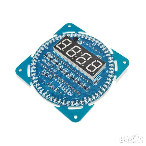 Този креативен цифров часовник комбинира въртящ се LED дисплей (POV ефект), точен температурен мониторинг (DS18B20) и функция за будилник в едно уникално устройство. Базиран на RTC чипа DS1302 (с резервно батерийно захранване), той показва времето и температурата чрез магически "висящи" в въздуха LED цифри, благодарение на бързо въртене на светодиодите.