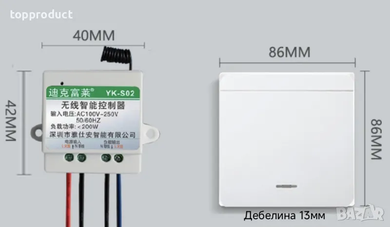 Захранване на модула AC100-250v, 50-60Hz. Подходящо за лампи и ел. уреди до 200W.