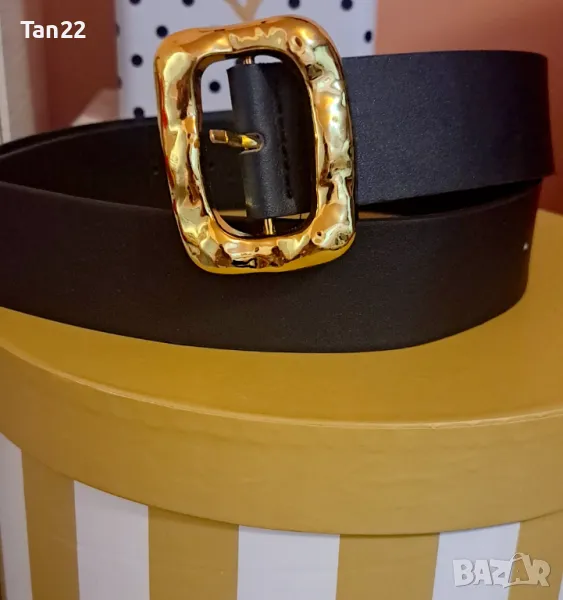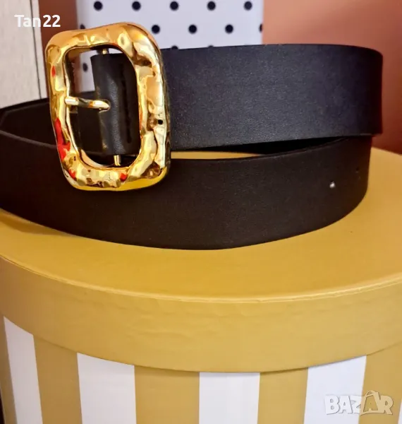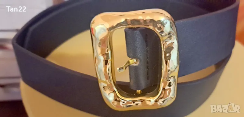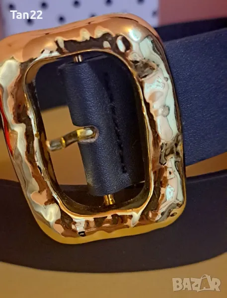 Нов дамски кожен, черен колан, с невероятно красива златиста тока
