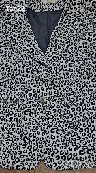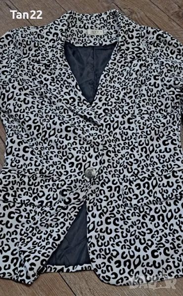 Ново дамско тънко сако в черно и бяло с нежно копче на Шанел и два джоба