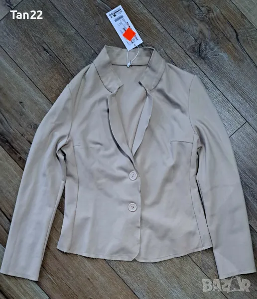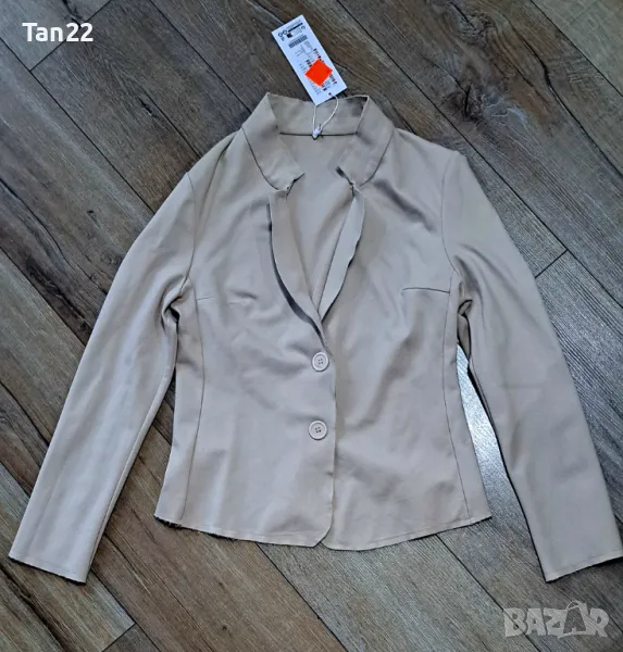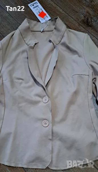Ново дамско тънко сако от плат в пастелен цвят- бежов с копчета и без подплата отдолу