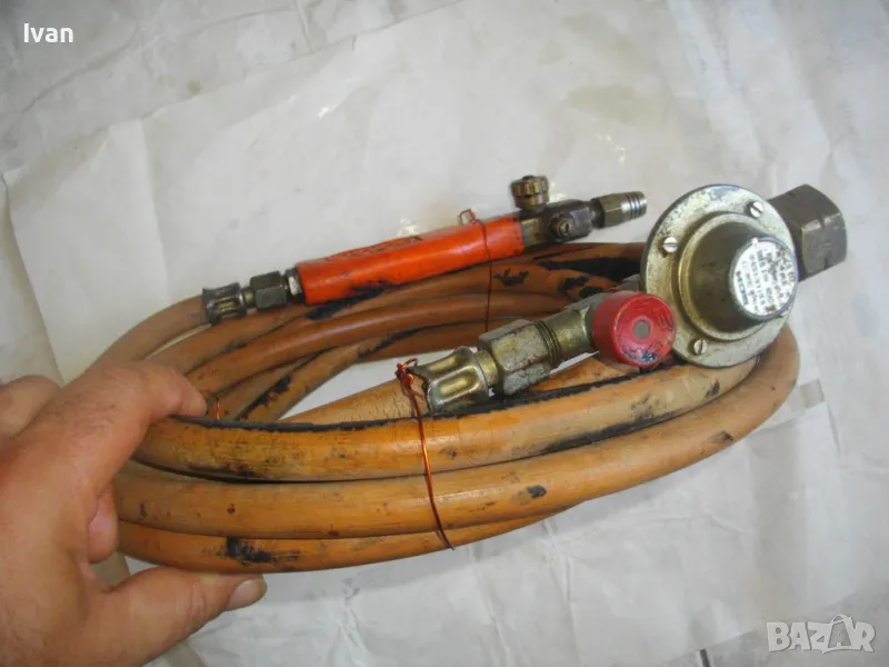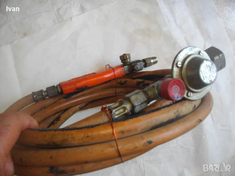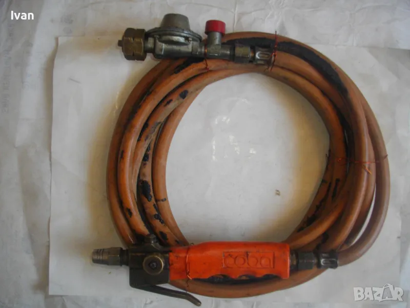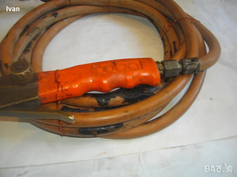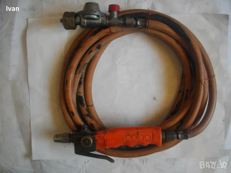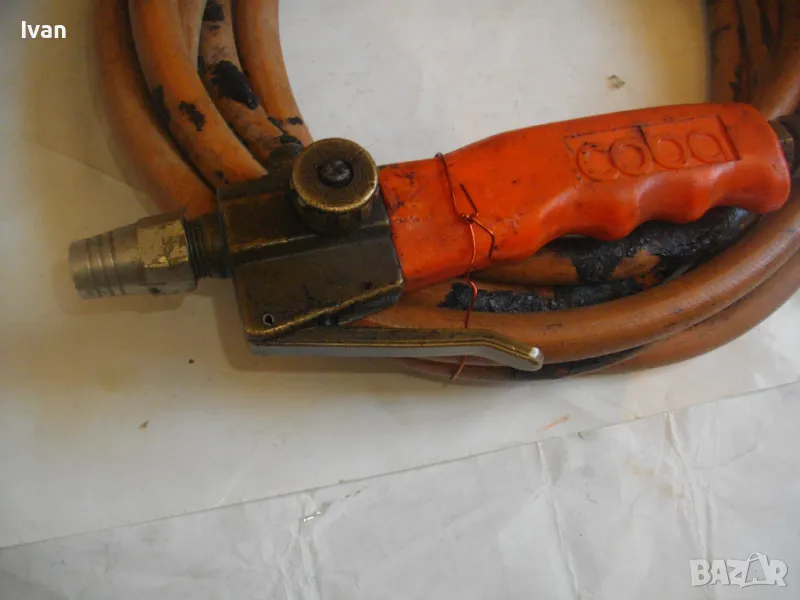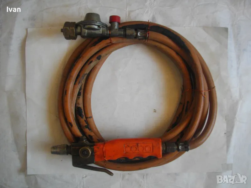 ОПИСАНИЕ на оранжева горелка/резак COBA с редуцир вентил и 4 м маркуч оригинален. Цена 159 лв. Немска оригинална горелка, работеща на пропан-бутан газ, с дръжка, накрайник на горелка и маркуч.Горелката е с масивен дълъг удобен бронзов спусък. Марка на дръжката-горелка -COBA . Налягане - до 4 bar. Дръжката е масивна - предна месингова част със спусък и два спирателни крана. Ръкохватка на дръжката - твърда пластмаса бакелитова. Маркуч дължина 4 м.