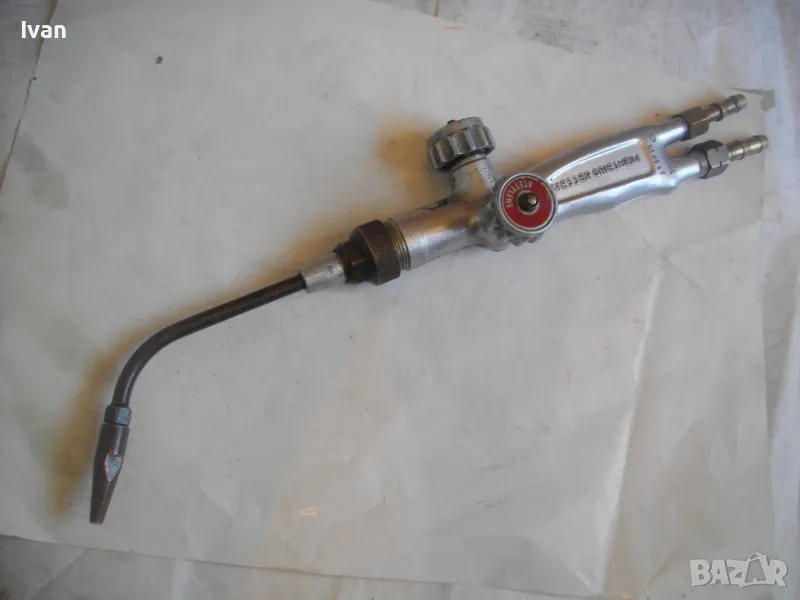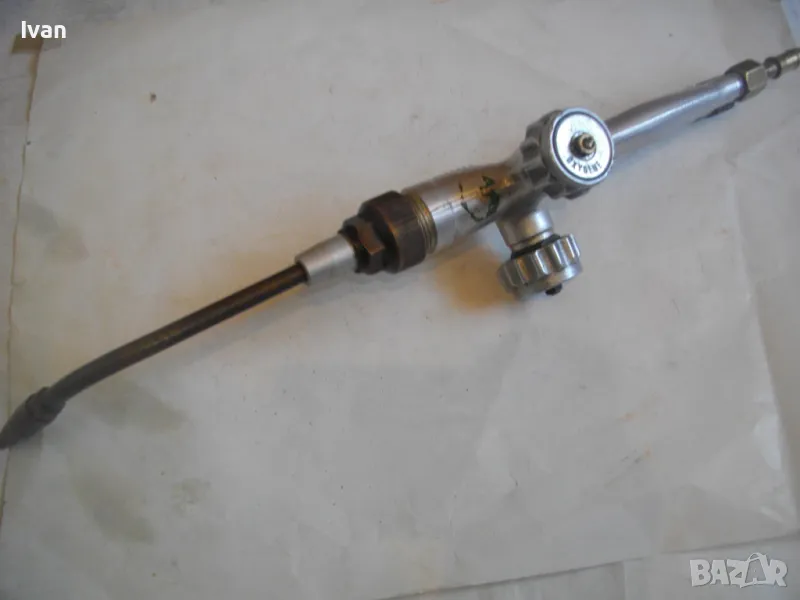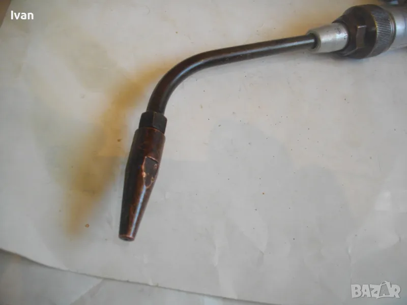 Рамо - ползвано, в отлично състояние - бронзово, 20 см, с бронзова гайка М 27 за стягане към дръжката, медна дълга контактна дюза отпред за заваряване размер 1-2 мм, с 1 дупка за пламъка.