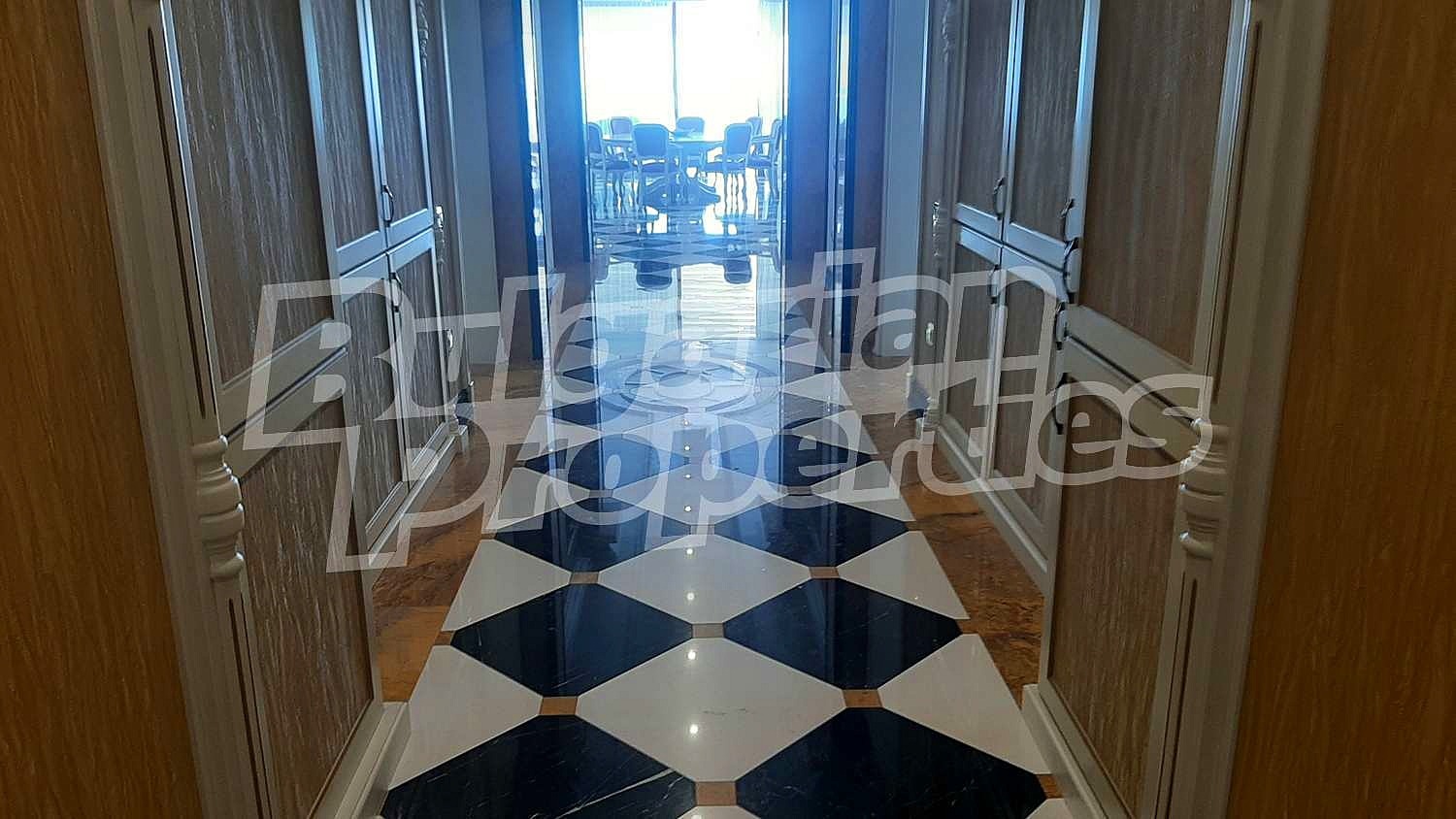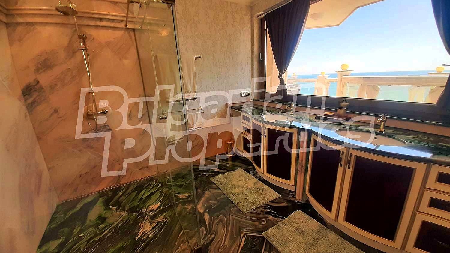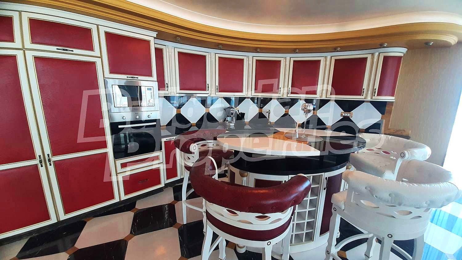 Жилището се намира на 5-ти и 6-ти етажи с обща площ 618.22 м2 (чиста площ 547.19 м2 плюс общи части 71.03 м2). Представлява голям дневен тракт със зона кухненски бокс, трапезария и лаундж зона, с ел. оборудван хладилник, фурна, миялна машина, климатик, мастър спалня със сосбствена баня и тоалетна, втора спалня със сосбствена баня, трета спалня преустроена като дрешник, антре/коридори и тоалетна за гости. Има просторна тераса с площ от 305 кв. м. с джакузи, която разкрива прекрасна морска гледка.