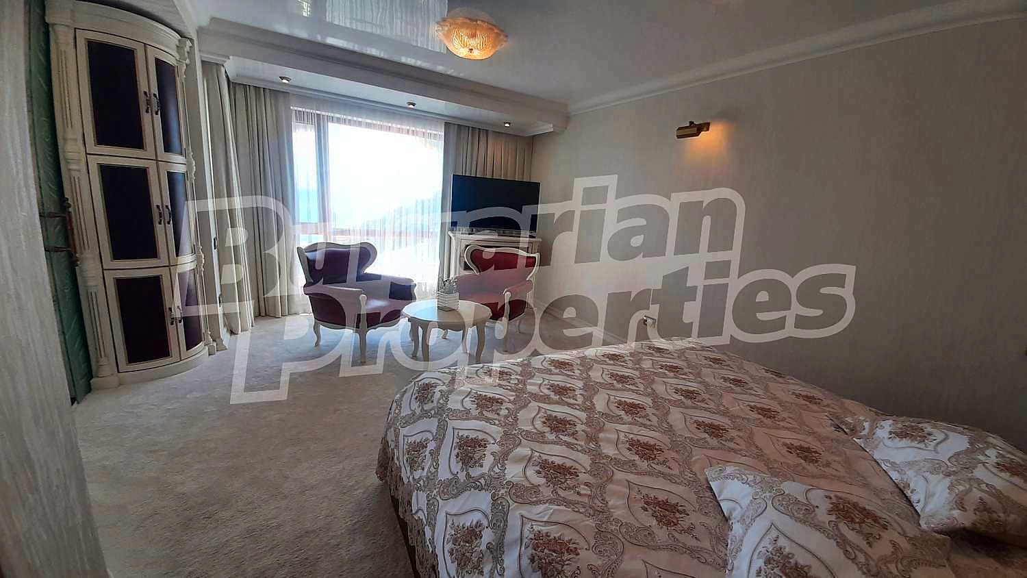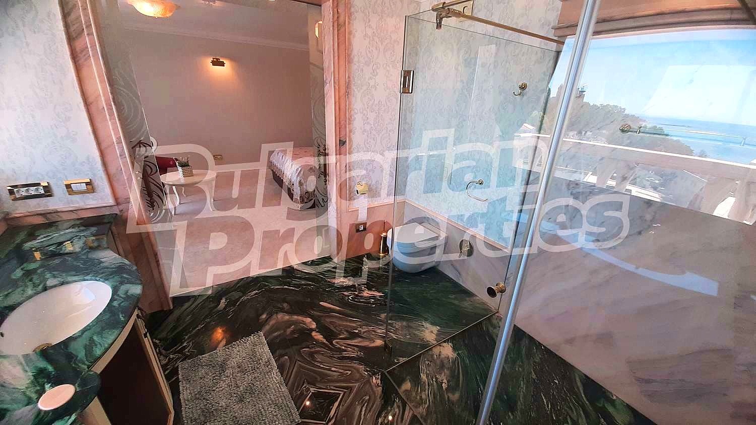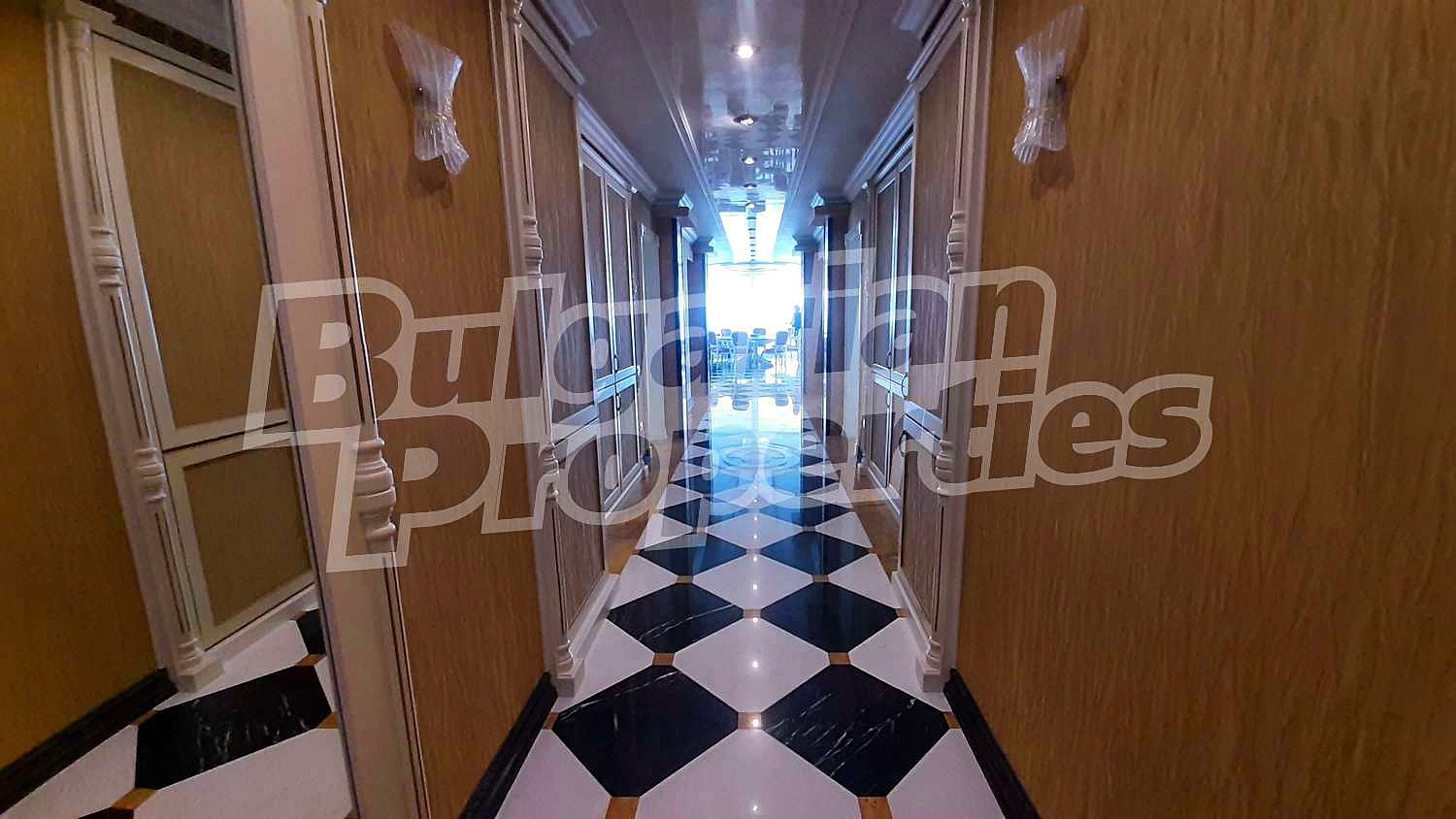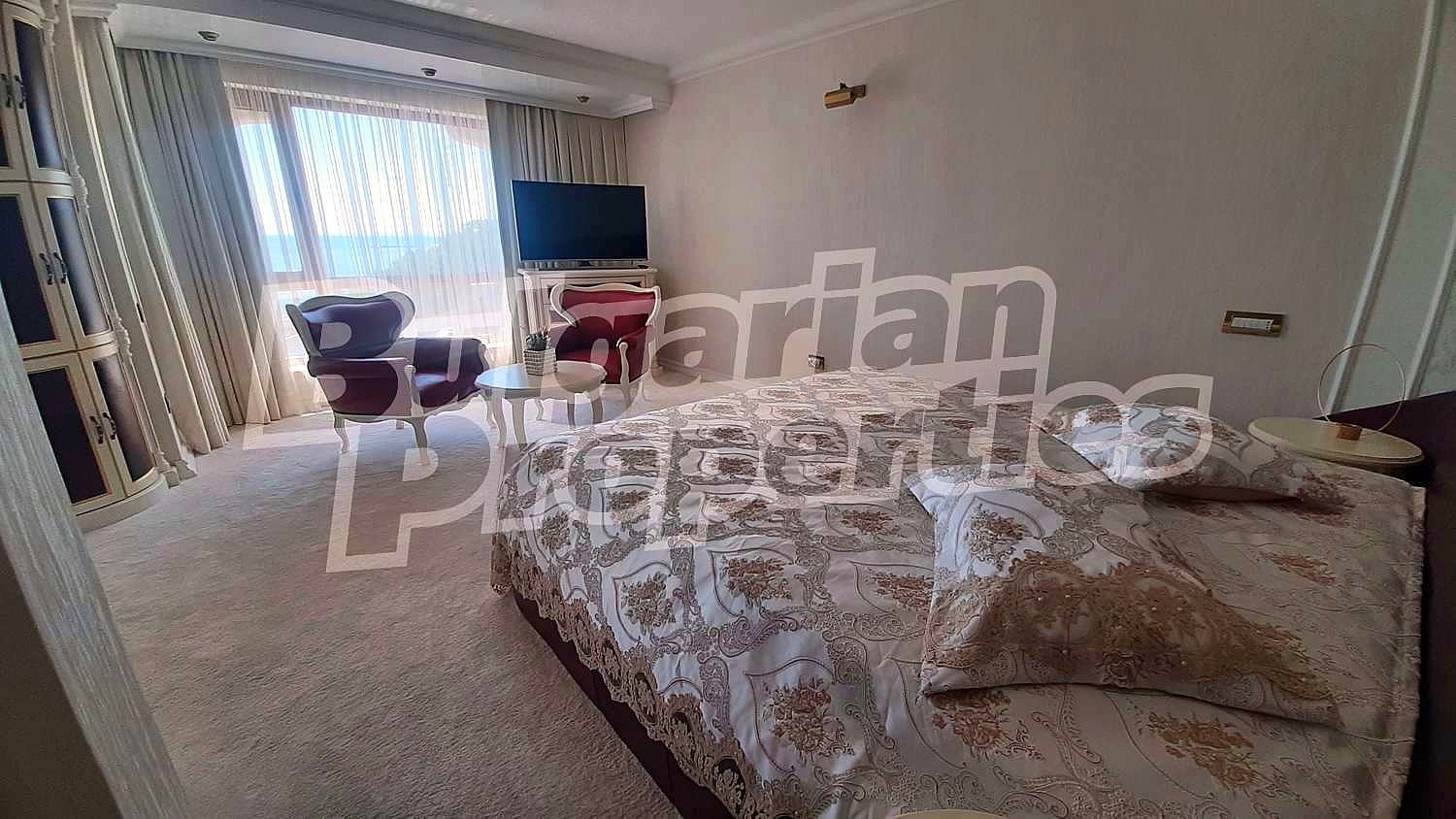 Жилището се намира на 5-ти и 6-ти етажи с обща площ 618.22 м2 (чиста площ 547.19 м2 плюс общи части 71.03 м2). Представлява голям дневен тракт със зона кухненски бокс, трапезария и лаундж зона, с ел. оборудван хладилник, фурна, миялна машина, климатик, мастър спалня със сосбствена баня и тоалетна, втора спалня със сосбствена баня, трета спалня преустроена като дрешник, антре/коридори и тоалетна за гости. Има просторна тераса с площ от 305 кв. м. с джакузи, която разкрива прекрасна морска гледка.