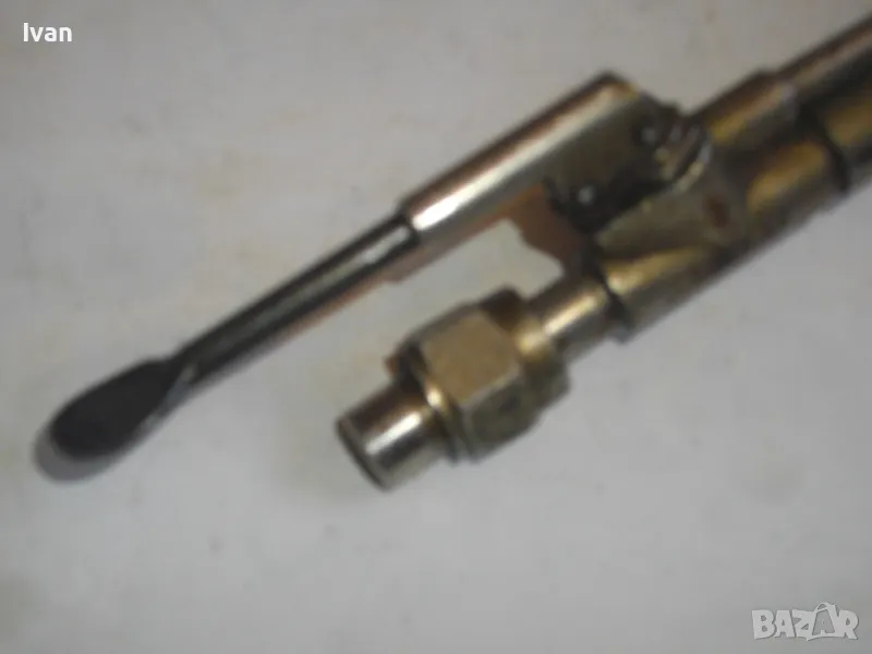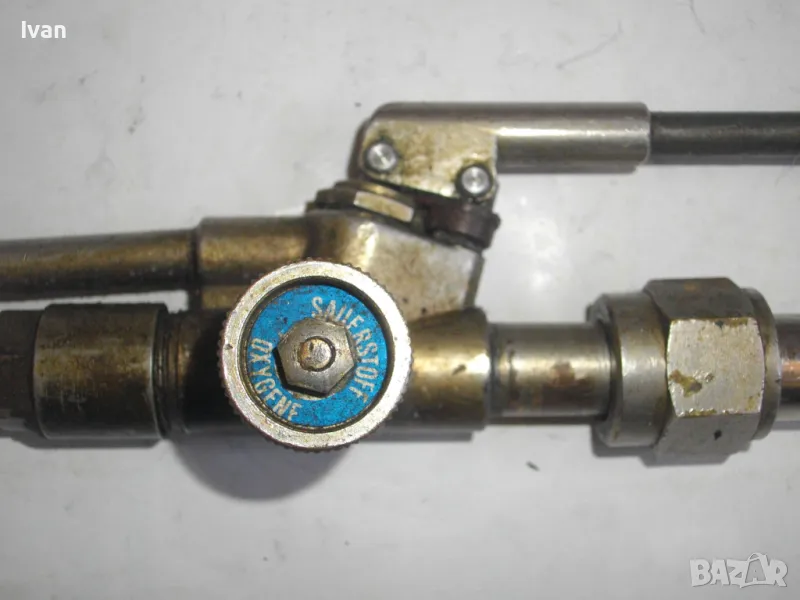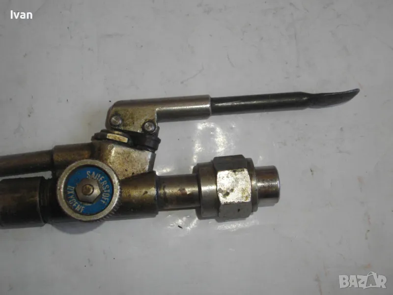 оксижен -за газо-кислородно рязане и заваряване - горелка . Немско производство - оригинално. Инструмента е малко порлзван, но в отлично техн. работно състоание. Работи много добре. Със спусък с натискане за стоп. резак за заваряване на газ. Немско прозводство. Отлично техн. състояние ,запазен външен вид. Всичко по резака е метално стоманено, без никаква пластмаса. Цялостна дължина - 220 мм. Марка на резака - GLOOP, упомената на маркировките.