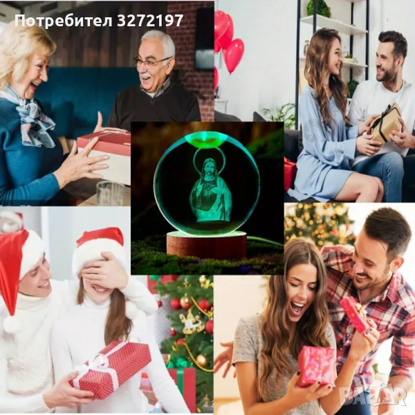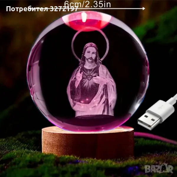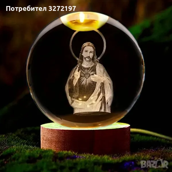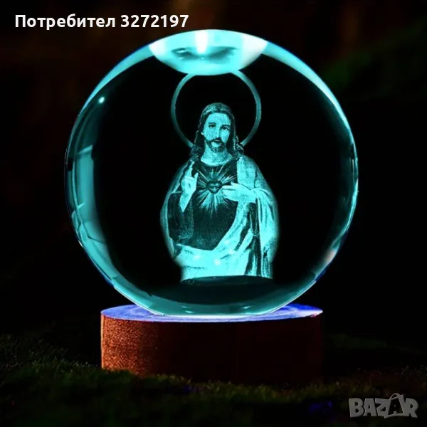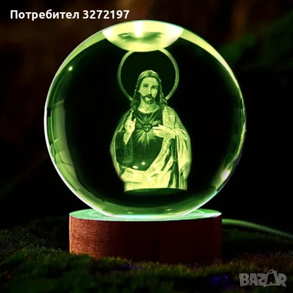 LED Светеща кристална топка/лампа, 3D сензорна -Исус Христос