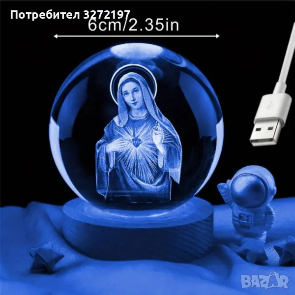 кристална топка/лампа, 3D сензорна -Дева Мария