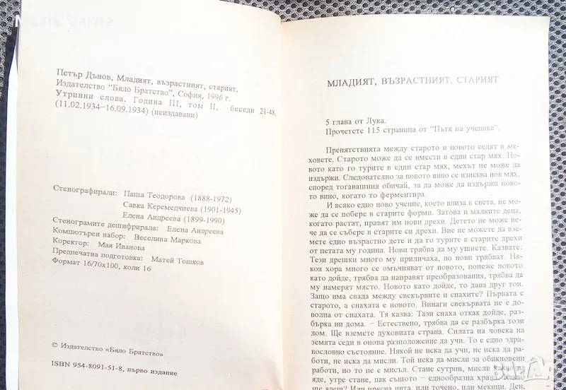 Петър Дънов "Младият, възрастният, старият. Утринни слова 1934" → Обява 46918746