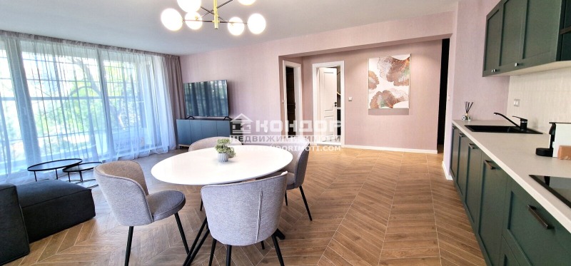 Оферта 64894: Предлагаме Ви възможността да закупите стилно завършен и дизайнерски обзаведен просторен тристаен апартамент в луксозна сграда с модерна визия, проектиран да създаде максимален комфорт и сигурност на живущите в него. Основната концепция e премиум строителство, отличаващо се със съвременен архитектурен дизайн и европейска визия . Едно от основните му предимства е страхотната локация, разположен на пешеходна близост до Централна градска част. Той съчетава лукс, спокойствие и комфорт, с подсигурени подземни паркоместа. Жилището се състои от просторна ъглова дневна - 34.14 кв.м., трапезария и кухненска част, две големи самостоятелни спални съответно с площ от 13.49кв.м. и 14,77кв.м., комфортна баня с тоалетна, втора тоалетна с мивка, килер с опция за перално помещение, входно антре с място за гардероб и една панорамна тераса. Основната концепция при проектирането е да се постигнат просторни и функционални стаи, с цел да се създаде максимален уют на модерното семейство. Изключителна съвременна архитектура и модерна технология на строителство. Визията е иновативна, привличаща внимание с уникалността си. Безопасна и сигурна среда за пребиваващите допълват комфорта на сградата. Всяко жилище разполага с пълно окабеляване за домофон, интернет и кабелна телевизия, общите части са луксозно завършени, жилищата са с алуминиева дограма с троен стъклопакет от най-висок клас, масивна блиндирана входна врата. Апартамента е стилно завършен и се продава напълно обзаведен с уреди и материали от най-висок клас :- Италиански поръчкови мебели по индивидуален дизайн- Кухненска конфигурация ДИАЛОГ с уреди BOSCH, LIEBHERR и осветителни тела- тапицирана спалня по италиански модел с матрак TED ERGO COMFORT- Климатична инсталация с мултисплит система DAIKIN- Телевизори SAMSUNG- Корнизи, завеси и пердета Miroxdecor. За удобство на живущите съществува възможността да закупят подземни паркоместа с топла връзка към комплекса. Възможност за закупуване чрез Банков Кредит на изключително изгодни условия за клиенти на агенцията !!!