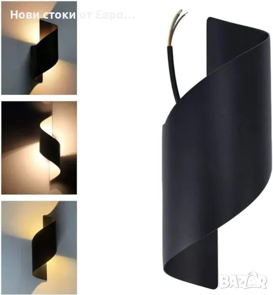 LED стенна лампа, модерна водоустойчива декоративна топла светлина иновативна спирална стенна лампа за спалня, хол, стълби, коридор Черен AC85-265V