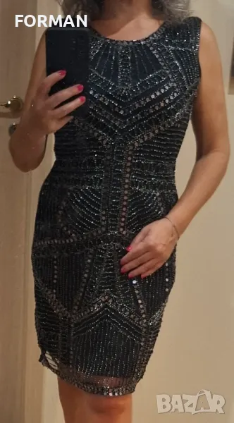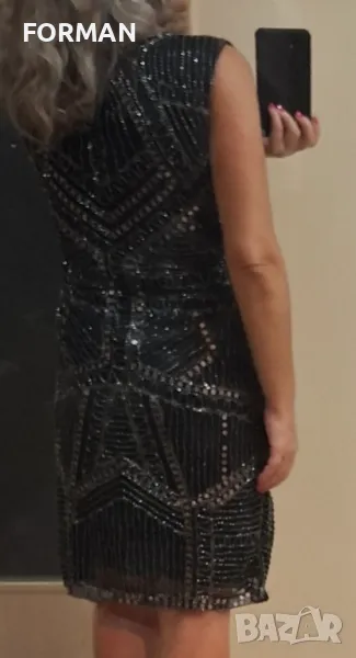 ВПЕЧАТЛЯВАЩА черна парти рокля, цялата в черни пайети и синци