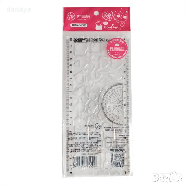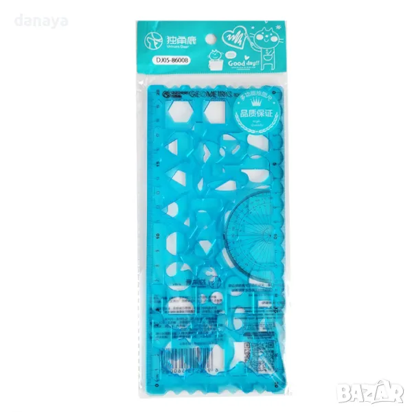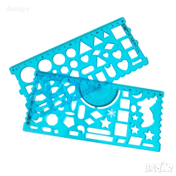 Комплект от 2 броя геометрични шаблони. С вградена измервателна линийка и транспортир. Геометричен шаблон, който включва геометрични фигури кръг, квадрат, елипса, триъгълници и други форми. Чудесни са за изработка на различни проекти, творчество и други.