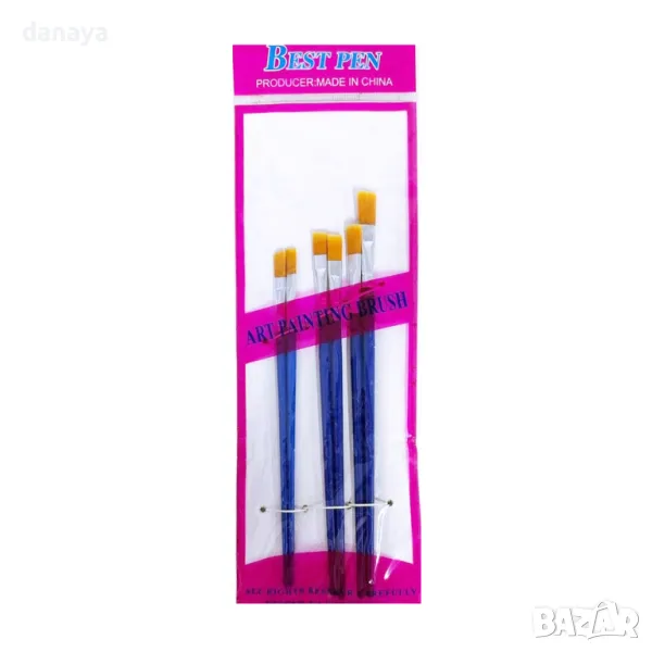 Комплект от 6 броя четки за рисуване с водни бои. Четки за рисуване с плосъкт връх, чудесни са за училище и домашно творене.