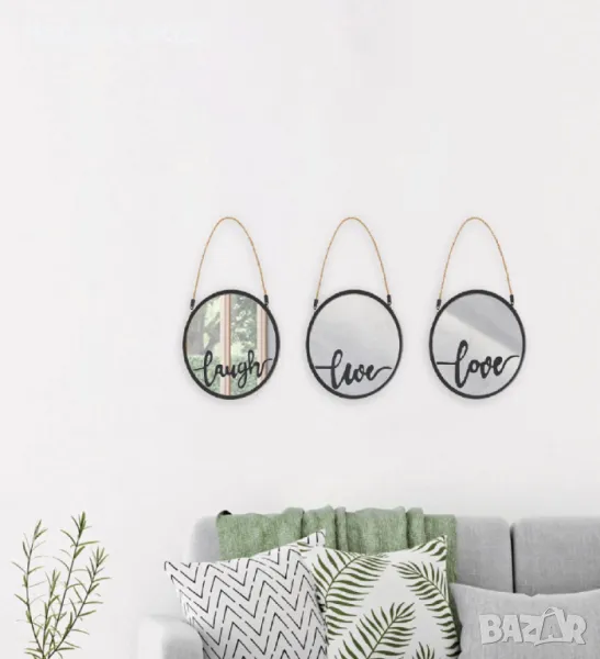 Комплект стенни огледала с въже, Love Live Laugh, 25см, 3 бр., снимка 1 - Други - 46923586 Комплект стенни огледала с въже, Love Live Laugh, 25см, 3 бр., снимка 2 - Други - 46923586 Комплект стенни огледала с въже, Love Live Laugh, 25см, 3 бр., снимка 3 - Други - 46923586 Комплект стенни огледала с въже, Love Live Laugh, 25см, 3 бр., снимка 4 - Други - 46923586 1/4