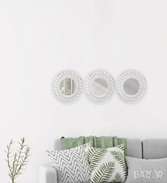 Комплект стенни огледала с пластмасова рамка, бяло злато - 3 бр.