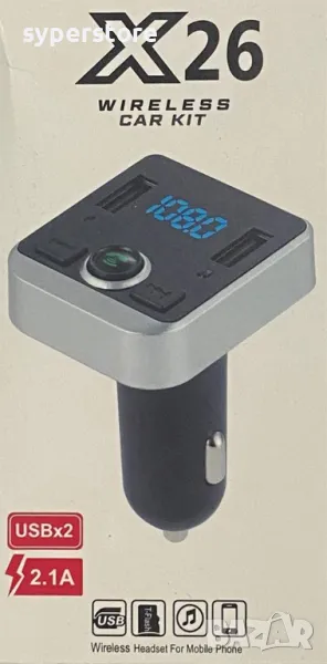 FM трансмитер Блутут Digital One SP00963 X26 Bluetooth v.5.0 + 2xUSB 2.1A