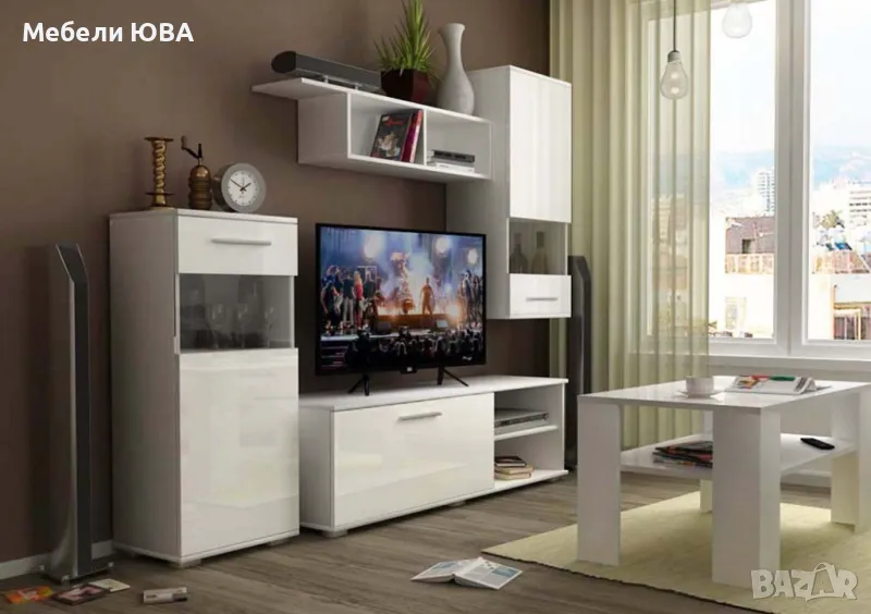 секция Емона може да се комбинира с маса Медея – бяло гланц и бяло