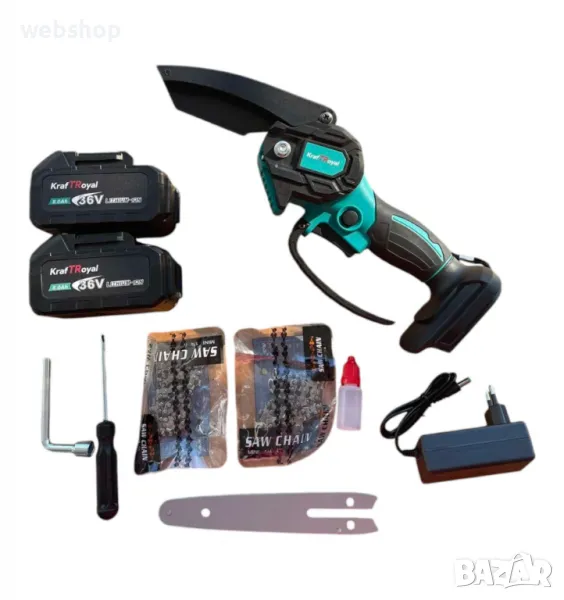 ТОП ЦЕНА!! Aкумулаторен трион KRAFTROYAL с 2 шини и 2 броя батерии 36V 8AH в Куфар