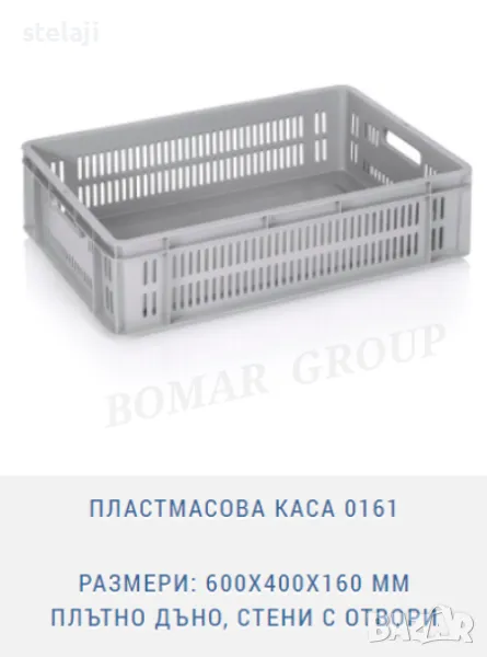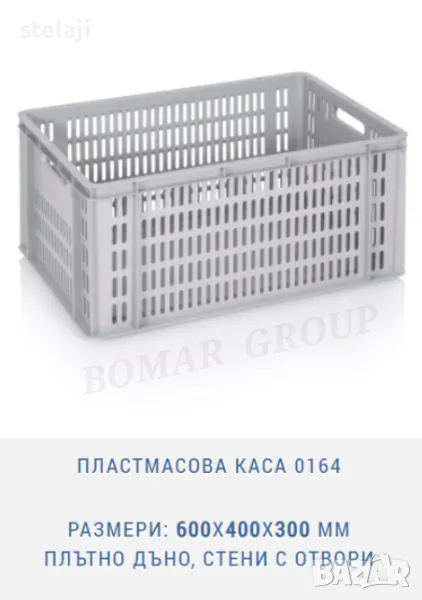 Пластмасова каса 0104 с размери: 600X400X180 мм дъно и стени с отвори