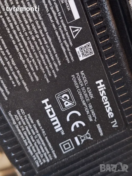 TCon BOARD,RSAG7.820.12570/ROH for HISENSE 43A6K for 43inc DISPLAY HD425Y1U01-T0L1 Борда е гарантирано работещ Демонтиран от телевизор HISENSE модел 43A6K със счупен дисплей ,HD425Y1U01-T0L1 тествана от нашия техник Ремонт на всички марки съвременни телевизори