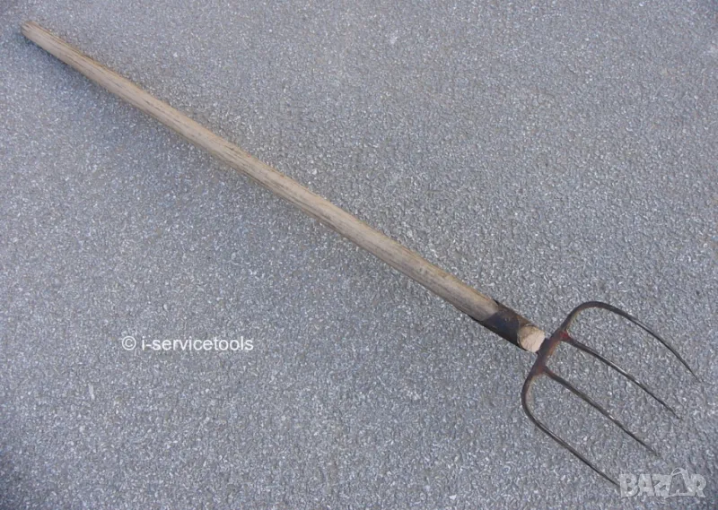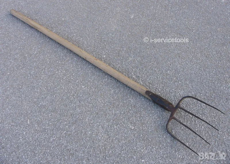 Многофункционален здрав и надежден практичен инструмент, ефективен за дейности свързани с почистване събиране на листна маса, растения и клонки, обработка на окосена трева сено бали снопи растителност, вадене на картофи, лук и други кореноплодни зеленчуци, разчистване изриване и разстилане на оборски тор компост и др. Подходящ за дейности в домакинството и бита в дом къща и вила, имот, двор и градина и др., инвентар селско стопанство земеделие, цветарство, градинарство, животновъдство скотовъдство и др., както и за заведение ресторант механа кръчма изба, битов кът, ритуали, за вътрешно обзавеждане интериорни решения за декорация в традиционен битов стил интериор в дом, вила и къща за гости, екстериор на градина, барбекю, ретро декор филм продукция, театър постановка спектакъл, предмет на художествено и дизайнерско творчество, експонат, колекция, колекционерство, колекциониране и др.