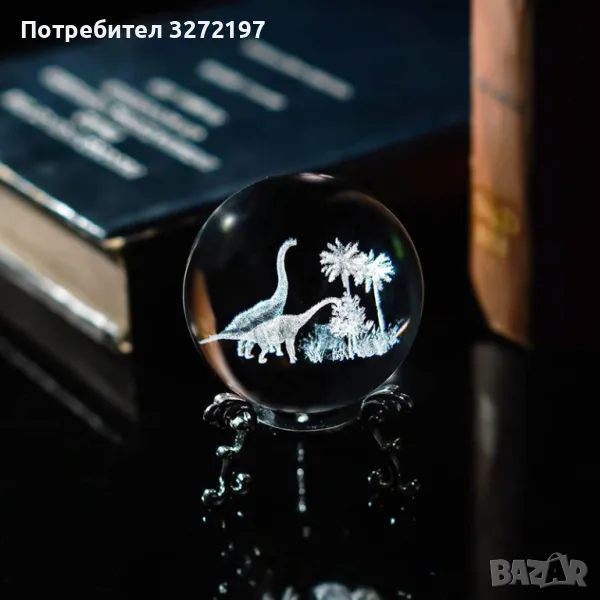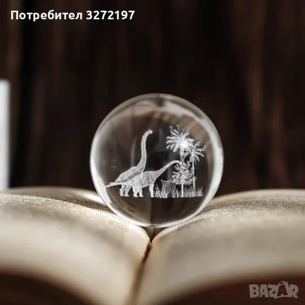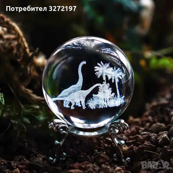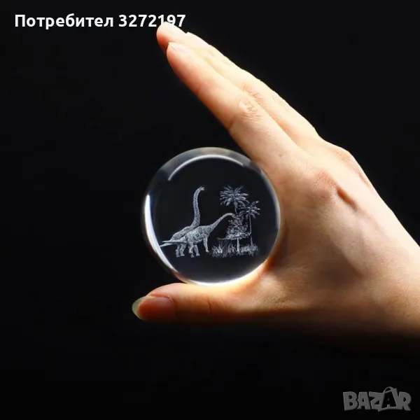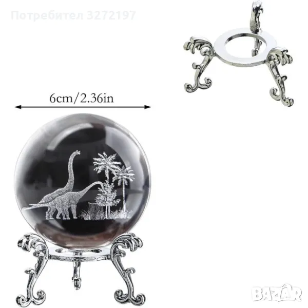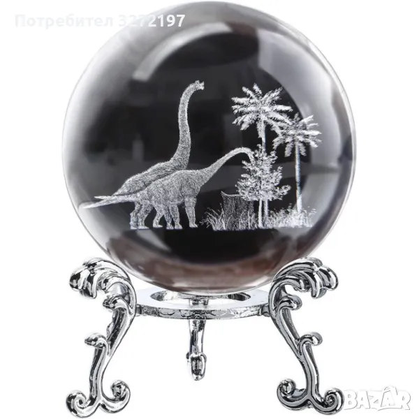 3D Прозрачен орнамент Динозаври в кристална топка 60 мм + стойка орнамент
