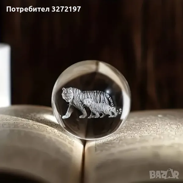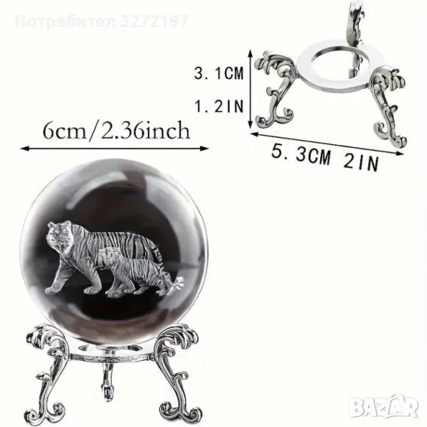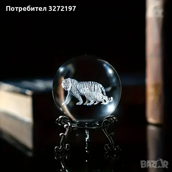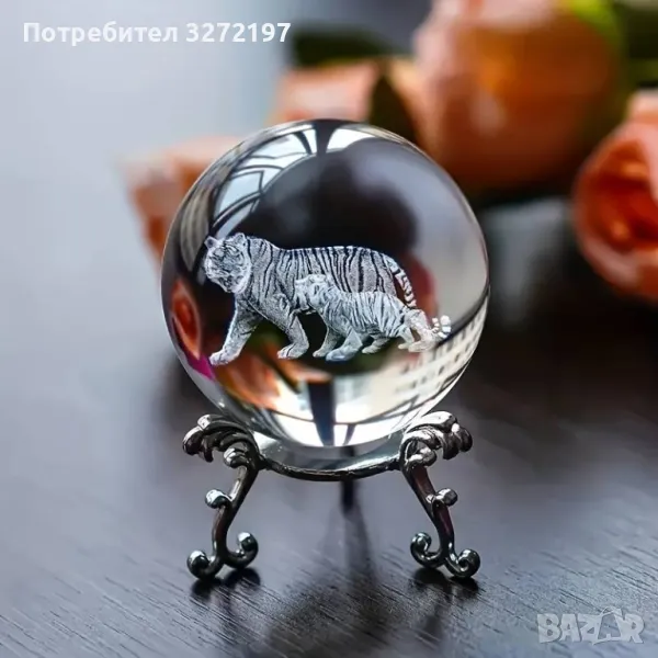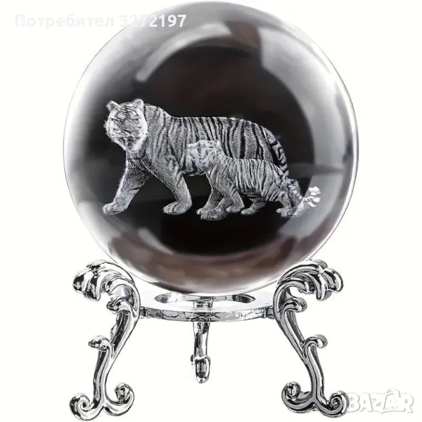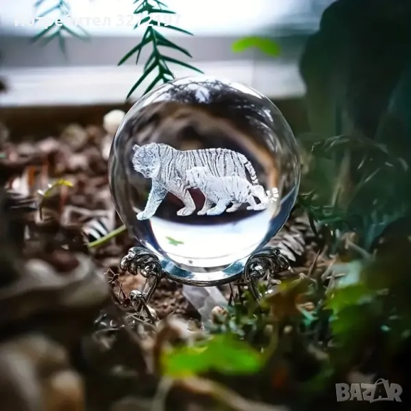 3D Прозрачен орнамент Тигри в кристална топка 60 мм + стойка орнамент