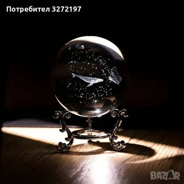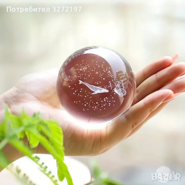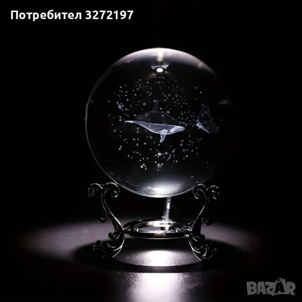 3D Прозрачен орнамент Кит в кристална топка 60 мм + стойка орнамент