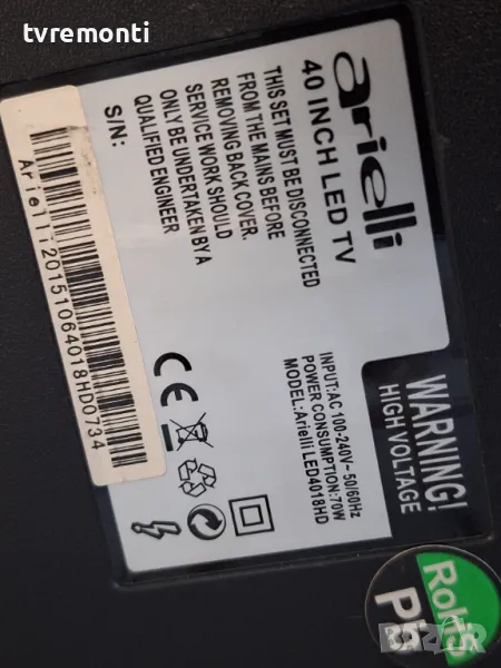 Платка MAIN AV HK-T.RT2957P61 for ARIELLI LED4018HD for 40inc DISPLAY CX390DLEDM Борда е гарантирано работещ Демонтиран от телевизор ARIELLI модел LED4018HD със счупен дисплей CX390DLEDM тествана от нашия техник Ремонт на всички марки съвременни телевизори