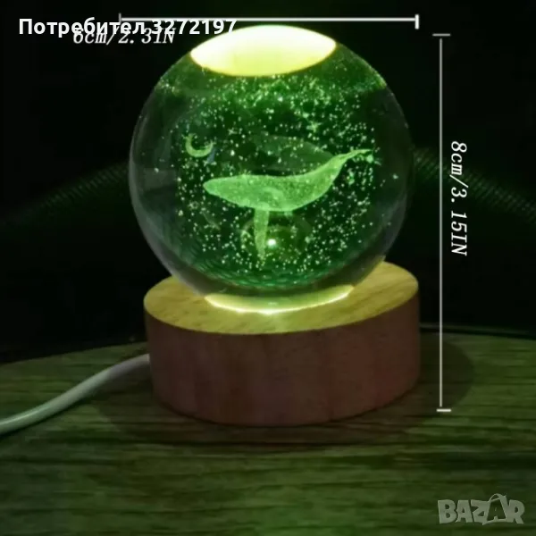 - Светеща нощна лампа с кристална топка