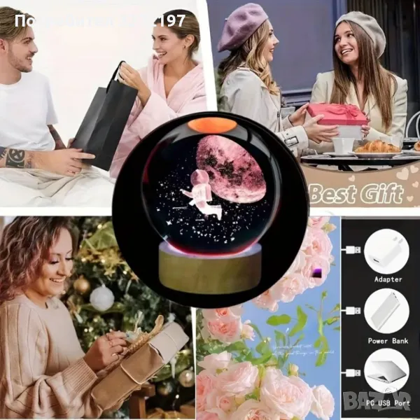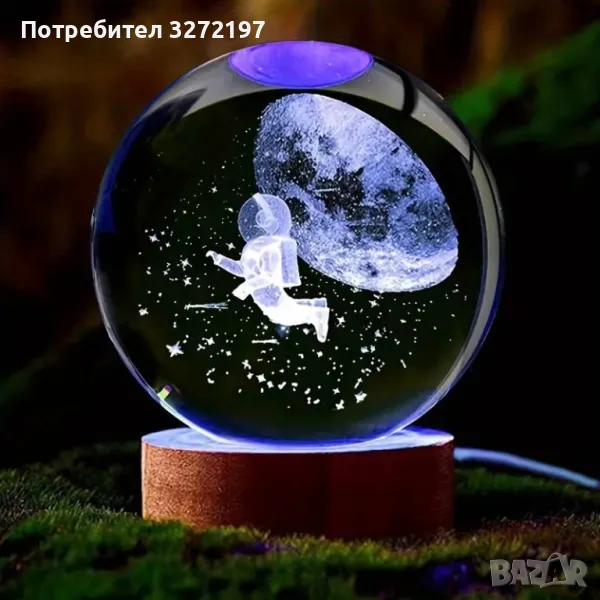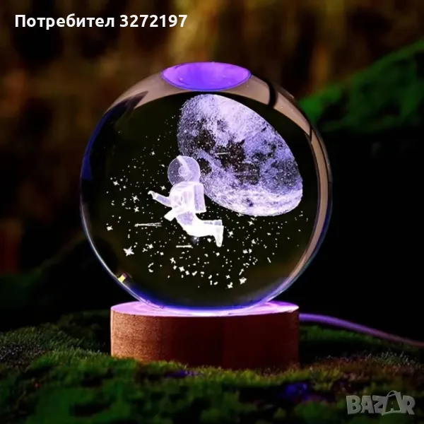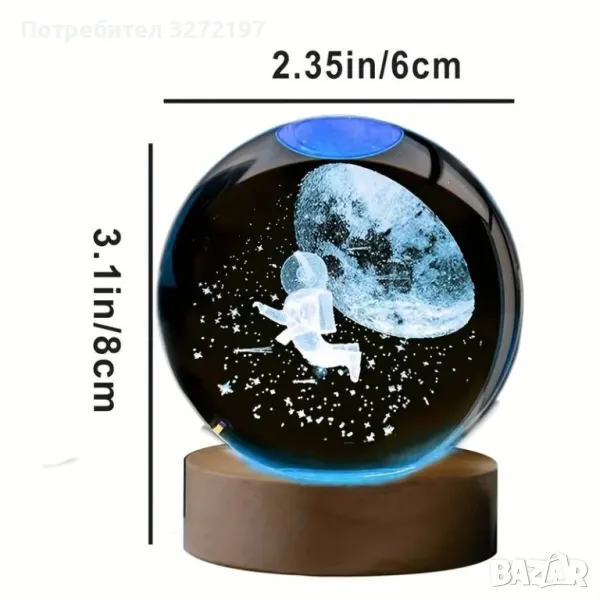 LED Светеща кристална топка/лампа, 3D сензорна - Астронавт в атмосферата