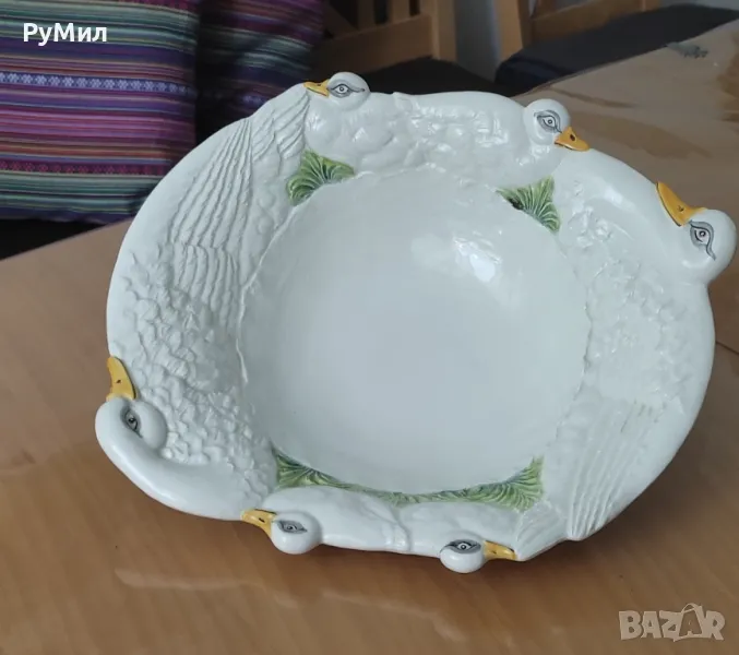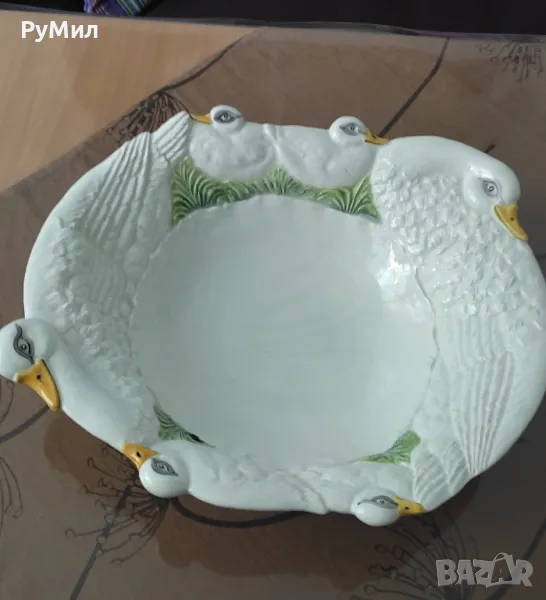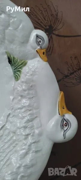 Голяма керамична купа* Красив релефен декор с гъски → Обява 46927093