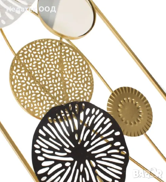 Метална рамка за стена с перфорирани цветя в черно, бяло и златно, в златиста рамка с малко огледало 8 см. Монтира се с 2 метални опори от задната страна. Пасва както на цветни, така и на бели стени и придава модерна нотка на вашата декорация.