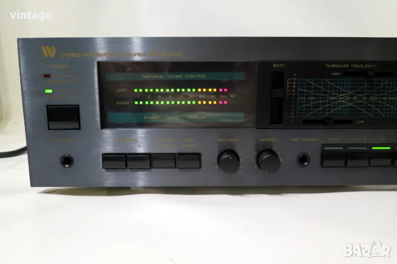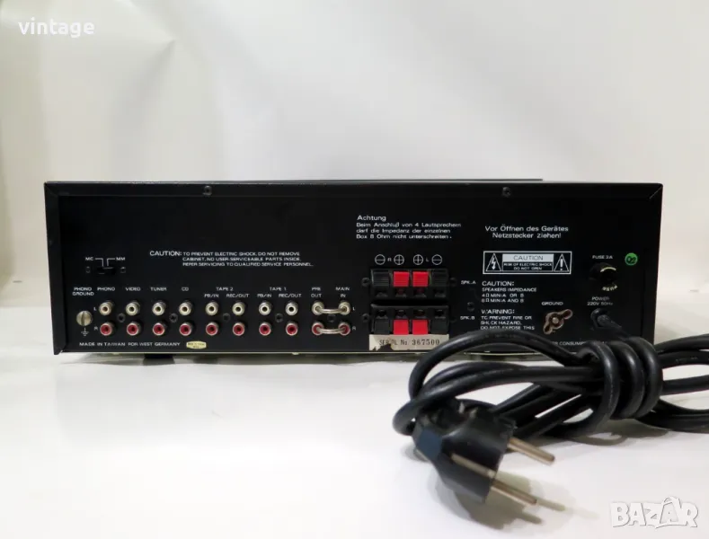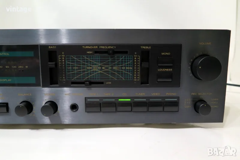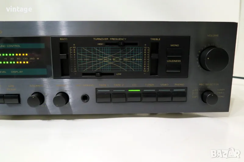 Транзисторен стерео усилвател, отличен технически, много добър външен вид. Корекции: bass, treble, loudness, low filter. Вход за микрофон с плавно регулиране, светодиоден индикатор за изходните нива. Много добър саунд. Приложените снимки са реални!