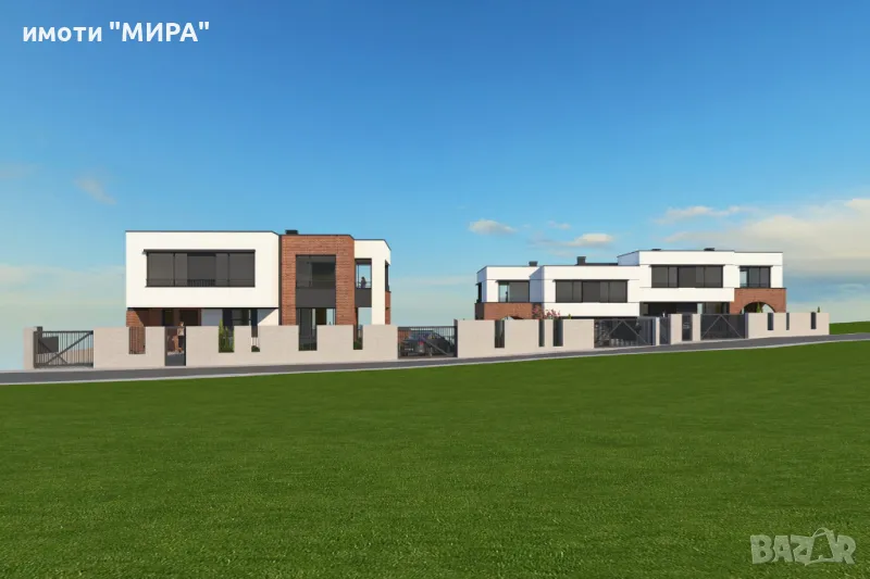 Къщите са на три нива и се отличават със съвременна архитектура, просторни помещения и много светлина.