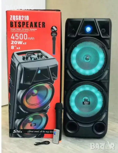 % Нова Cobra ZQS8210 2х8 40W ПРЕНОСИМА КАРАОКЕ КОЛОНА ZQS8210 двоен говорител и микрофон.