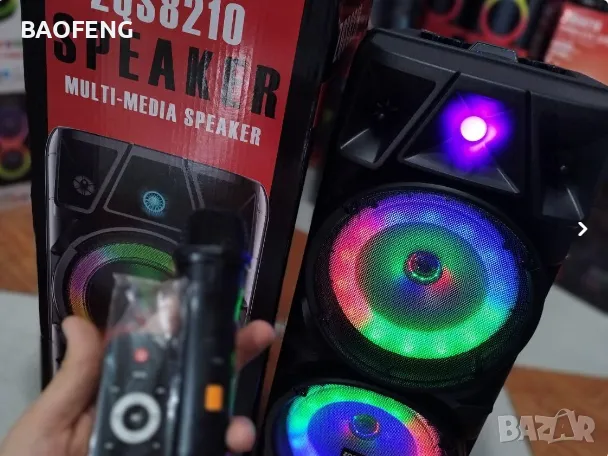 №1 Нова ZQS8210 2х8 120W ПРЕНОСИМА КАРАОКЕ КОЛОНА ZQS8210 двоен говорител и 2 микрофона.