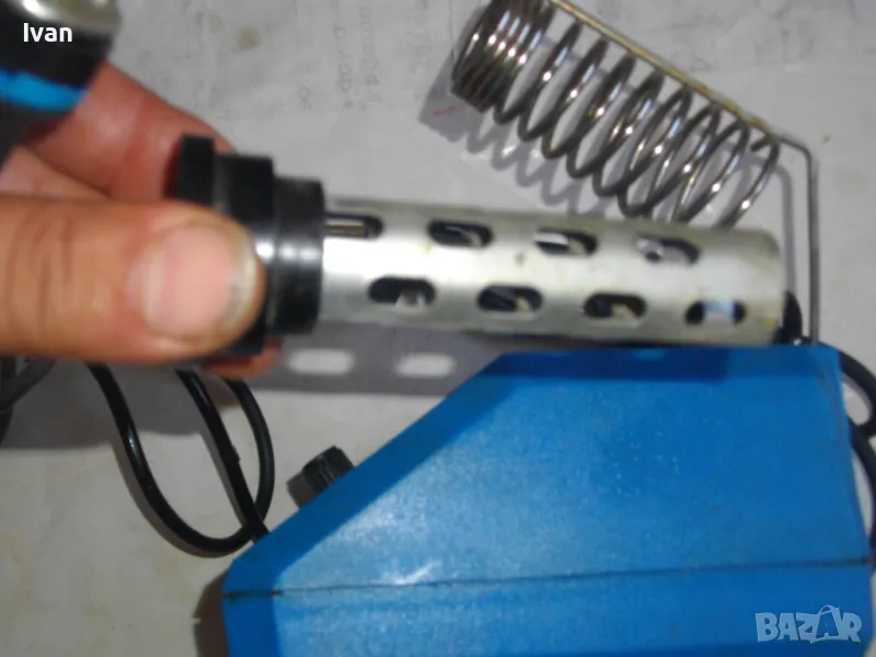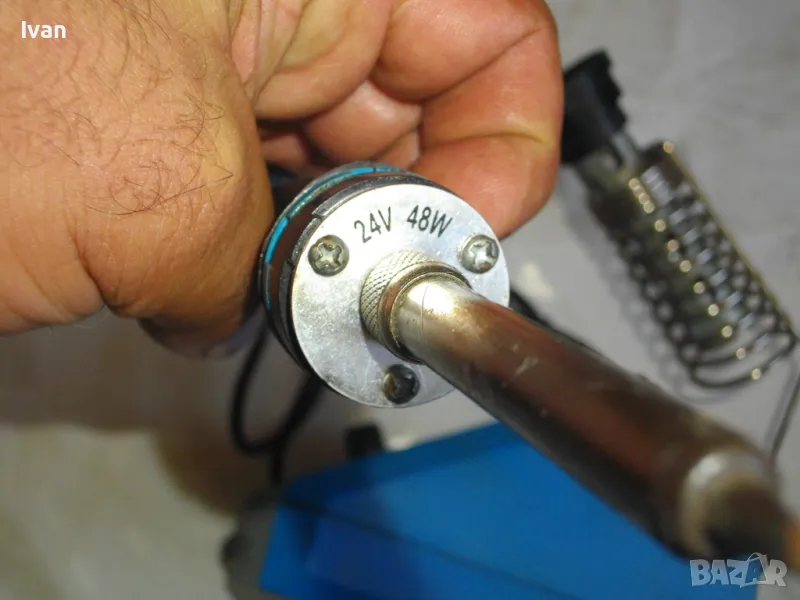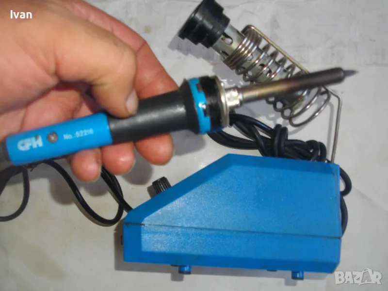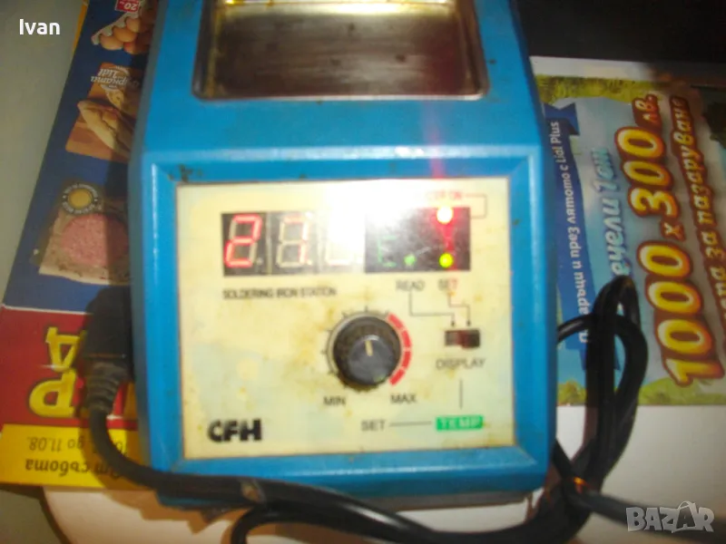 ОПИСАНИЕ на станция за запояване - 219 лв. Марка CFH. Старо качество. Отлично техническо/работно състояние. Развива температура до 400 градуса. Характеристики на поялника - 24 волта, 48 вата. Станцията работи директно на 220 волта. Описание: Станция за запояване, предназначена както за непрофесионални така и за професионални електронни техници с LED дисплей. Електронна, точна температура избор, регулиране на температурата от 150- 400/450 ° C. Включва железен държач. За електроника, фина електроника, изграждане на модели и много други. Работно напрежение: първична AC 230 V / 50 Hz, вторична 12 V за запояване. Изходна мощност: максимум 48 W / 230 V. Максимална температура на върха: 400 ° C