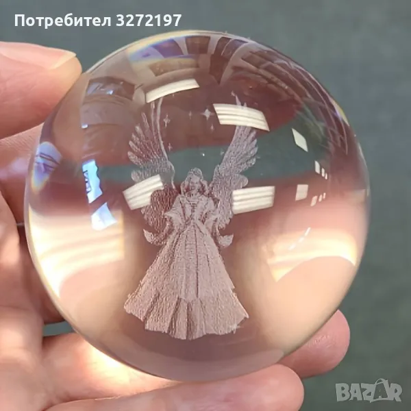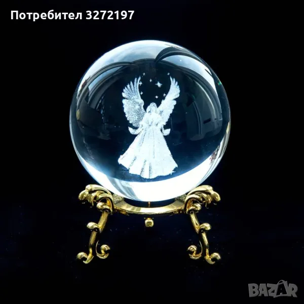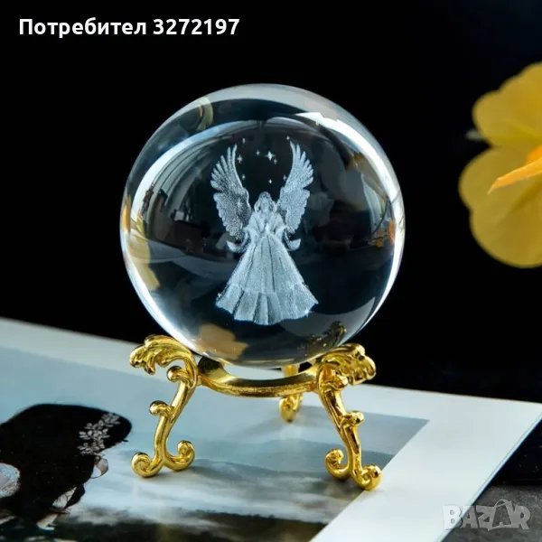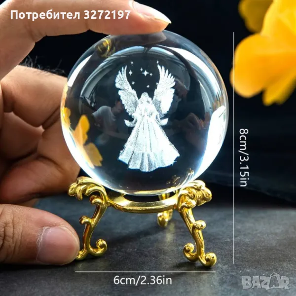 3D Прозрачен орнамент на Ангел в кристална топка 60 мм + стойка орнамент