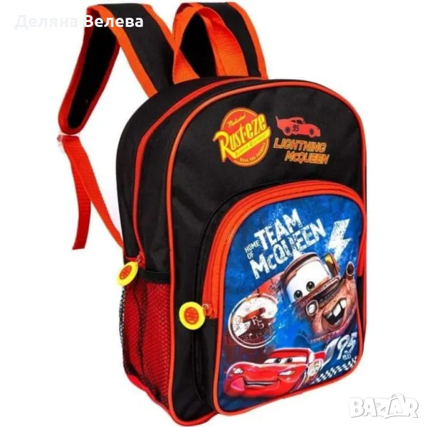 Детска раница с едно отделение, един преден джоб с цип и един страничен мрежест джоб. Веселата картинка и гумените държачи за циповете с формата на кола ще зарадват много вашето дете. Размери на раницата- 26 * 15 * 33 см.